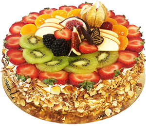 Sockerkaksbottnar, hallonsylt, vaniljkräm, vispgrädde 40 %, färska bär och frukter